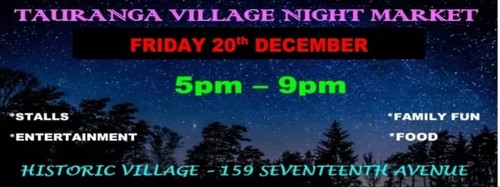 Tauranga Village Night MarketThe atmosphere is alive with people all meeting together to share food and family fun. Whether you are there to meet friends or with the family, it’s a great night out, so bring the family, bring your friend your ...