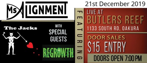 MsAlignment EP Release PartyWhat better to do on the Saturday before Christmas but dance the night away to 3 rocking bands of Taranaki! First time release party, Ms Alignment hits the stage bringing you their original groovy rock infused sound ...