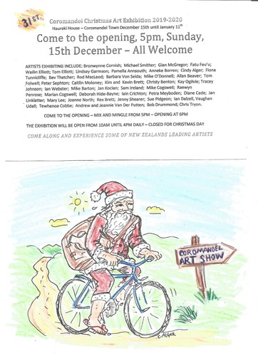 Coromandel Christmas Art ExhibitionOver 40 artists work on display over the holiday period at the historic Hauraki House in Coromandel Town. This is the 31st year that this annual exhibition has been running. Artist work includes a wide range of ...