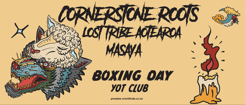 Cornerstone Roots - Boxing DayAnnual Boxing Day Bash with Cornerstone Roots plus guests Lost Tribe Aotearoa and Masaya. Cornerstone Roots is a New Zealand Roots group from Raglan. The 6 piece group that consists of 4 family members ...